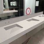 Description: Corian Aspen is a versatile and elegant light grey colour with semi-translucent particles. It complements various design styles and works well in kitchens and bathrooms when paired with dark or light elements. The neutral base and translucent particles create a sophisticated appearance that suits different design styles. This colour choice offers a balance between warmth and coolness, making it popular for residential and commercial use.