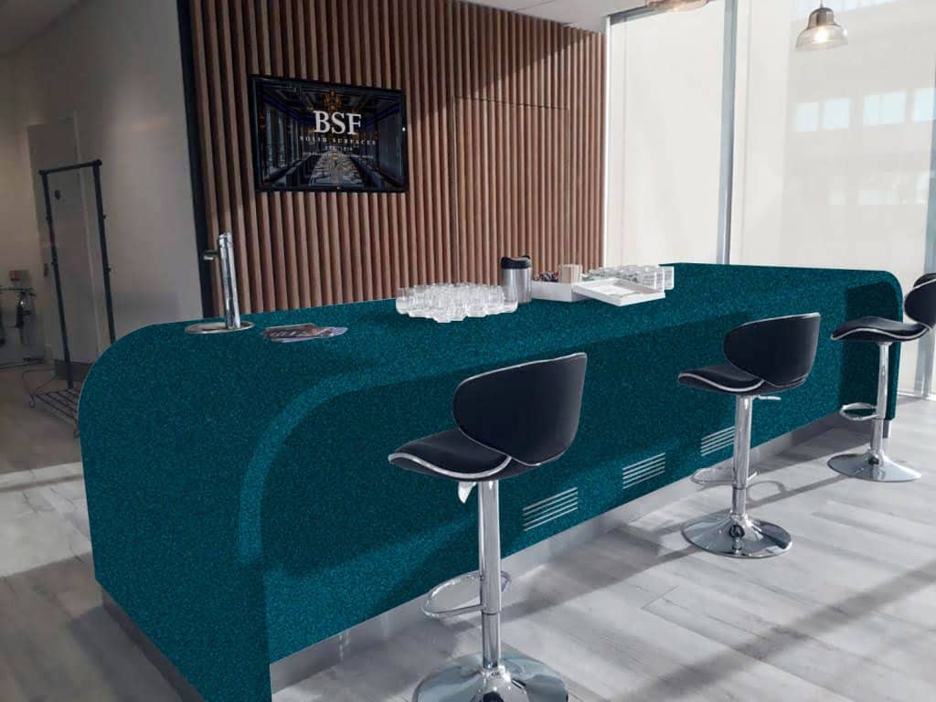 Description: Krion Atlantic Blue Star is a striking mid-blue colour with a hint of turquoise and metallic shimmer. It creates a calming and stylish look, making it ideal for modern designs. Its shiny quality and subtle sparkle offer versatility and appeal.