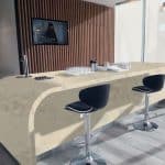 Description: HIMACS Aurora Butter Cream is a Stylish Solid surface material with a sophisticated beige hue and a subtle chip pattern. Its smooth, non-porous surface is made of acrylic, minerals, and natural pigments, creating a visually appealing finish. Ideal for residential and commercial settings.