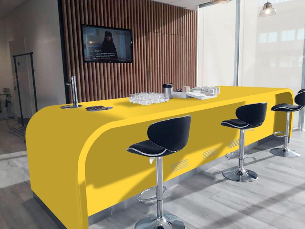 Description: Hi-MACS Banana is a vibrant yellow colour. This cheerful and eye-catching hue is stain-resistant and easy to clean, making it a practical choice for various applications. Its vivid colour creates a striking visual impact, adding a bold, sunny appearance to any interior design setting.