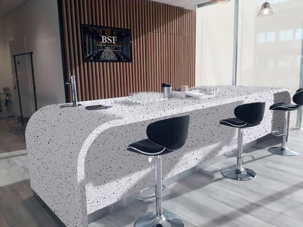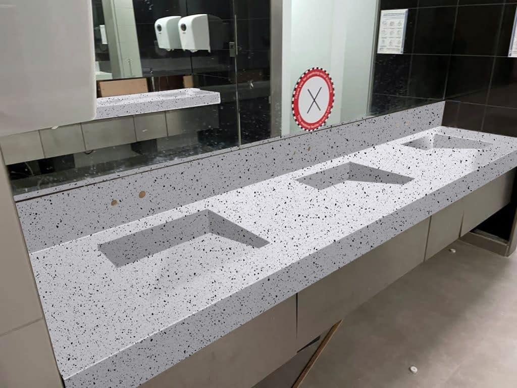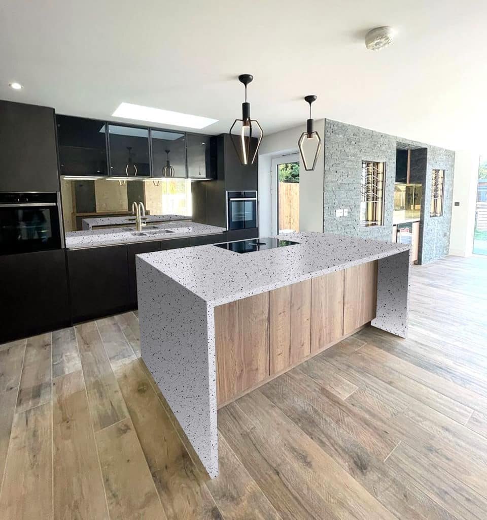 Description: Krion Bianco Classico is a refined colour with a soft grey terrazzo pattern that adds sophistication. Its gentle grey tones and lighter flecks create a timeless look. This versatile shade fits well in both modern and traditional design styles.