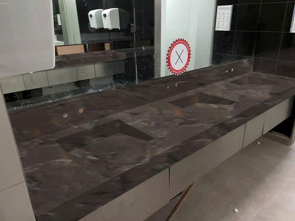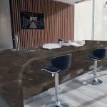 Description: This richly layered surface features deep brown and charcoal swirls, softened by earthy undertones of clay and rust. With its dramatic movement and natural, weathered look, Cattail brings depth and intensity, a bold option that evokes stone or woodgrain with a tactile edge