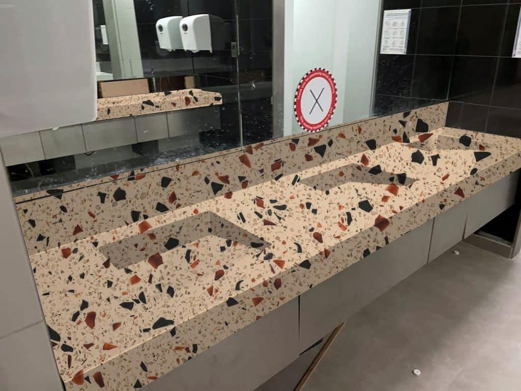 View DURAT P002 Cherry Bombshell Beige Terrazzo in real life