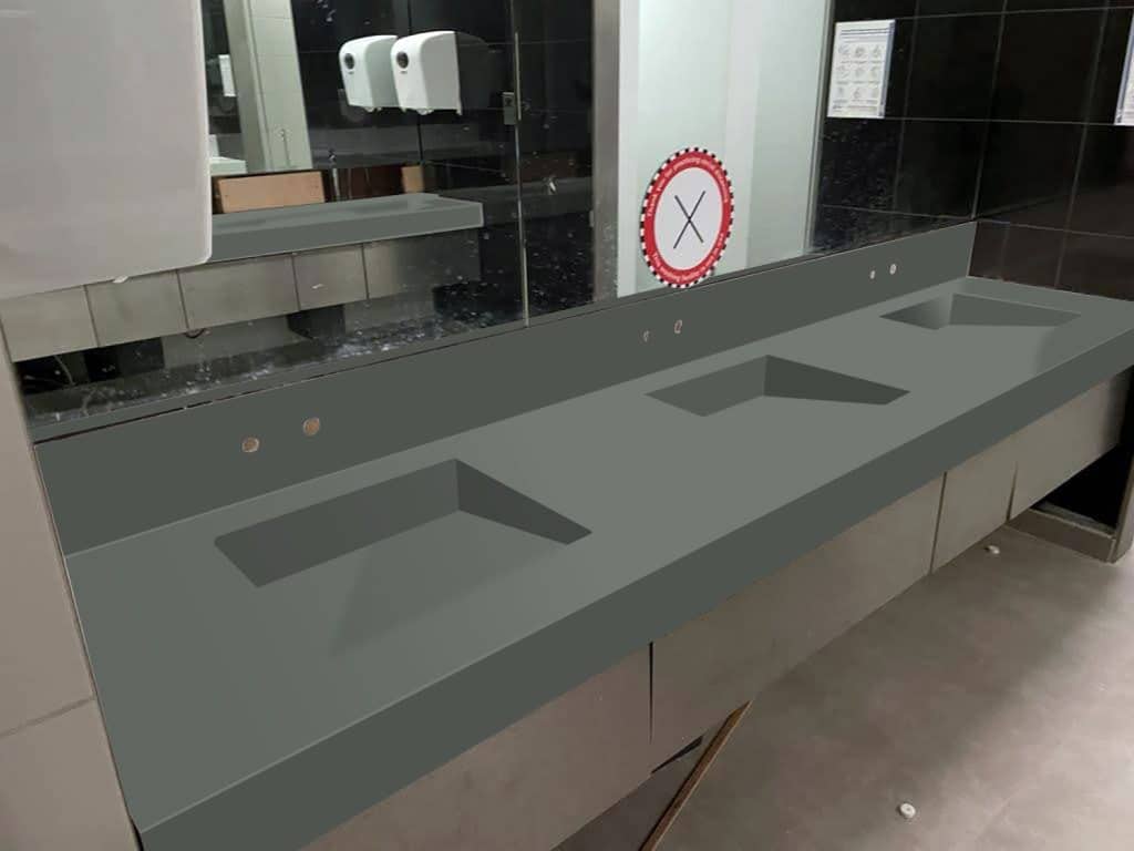 Description: HIMACS Concrete Grey is a solid grey colour with a modern, industrial look. Its neutral grey tone mimics concrete, making it perfect for vanity tops and cladding.Durable and easy to maintain, it complements various design elements for a stylish, sophisticated space.