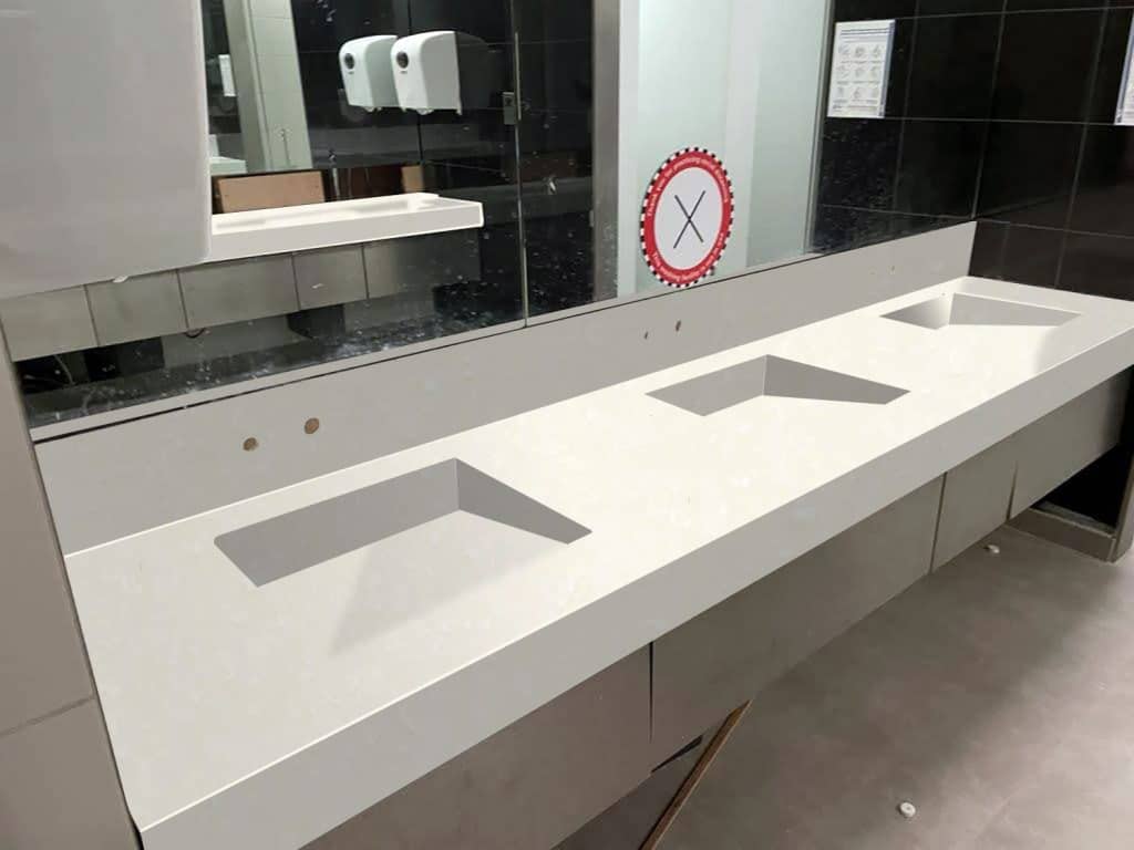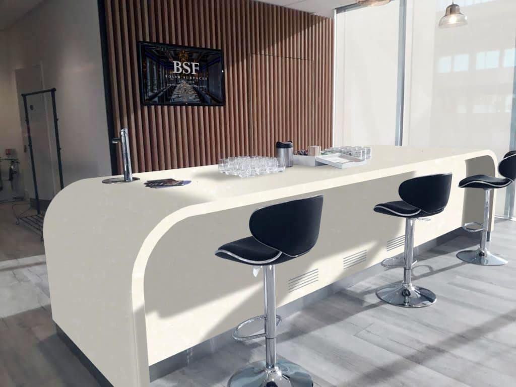 Description: Corian Arctic Ice Solid Surface is a pale, semi-translucent white solid surface material with a clean, icy appearance resembling its namesake. It's ideal for backlit applications, adding depth and texture with its speckled pattern of white particles. This versatile colour is perfect for kitchen work surfaces and contributes to a fresh, modern look in interior design projects.