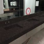 Description: Corian Deep Storm is a multi-toned colour featuring shades of grey, black, and beige with speckled patterns, creating a storm-like appearance. It has a dark grey base with black undertones, beige and lighter grey speckles, and a mottled, textured appearance similar to a stormy sky.