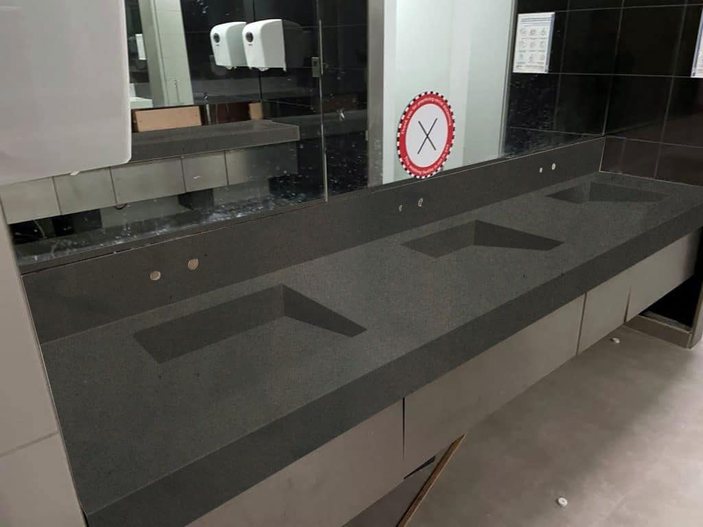 Description: HIMACS Ebony Concrete is a dark grey colour that has a rugged appearance similar to raw concrete. It combines the industrial look of concrete with the smooth finish of Solid Surface material, making it ideal for modern interior designs. However, please note that due to its intense colour and unique characteristics, HIMACS Ebony Concrete may not be suitable for all applications.