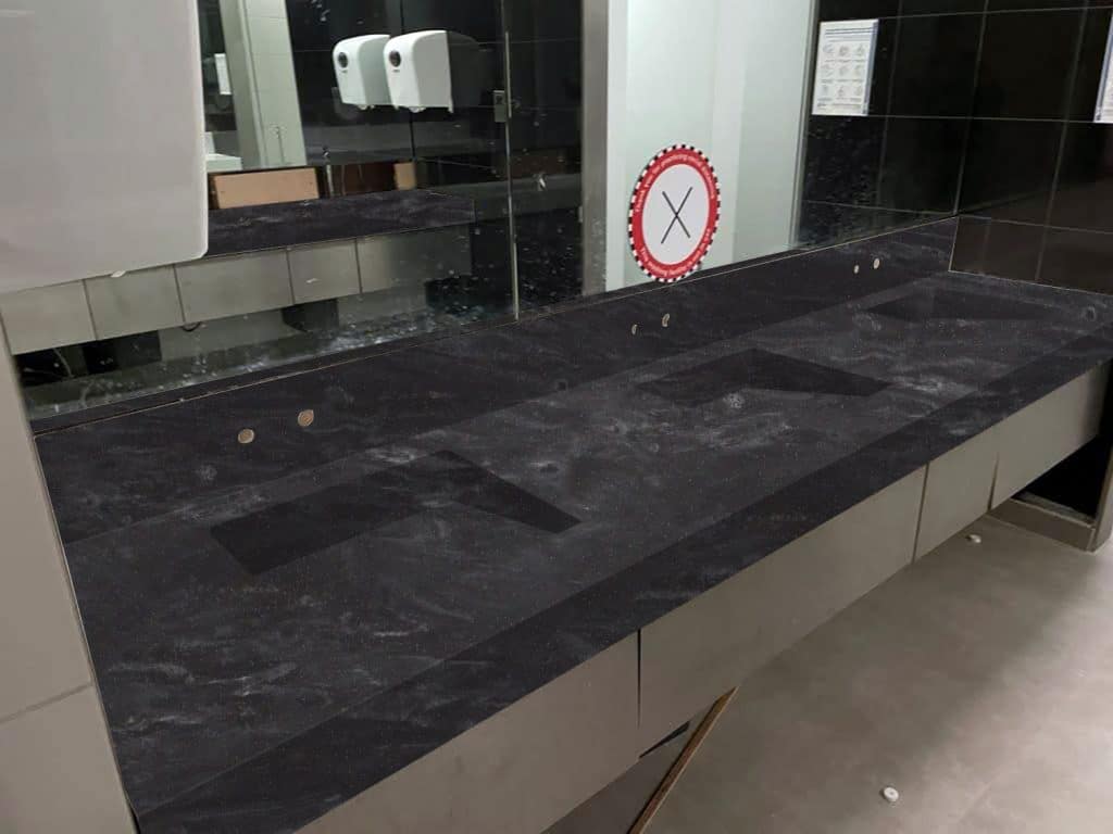Description: Krion Etna is a bold black colour with subtle veins that create a sophisticated look. Its rich shade adds elegance and works well with both modern and classic designs. This makes it a flexible choice for creating stylish and refined spaces.