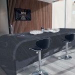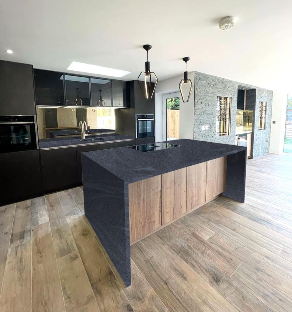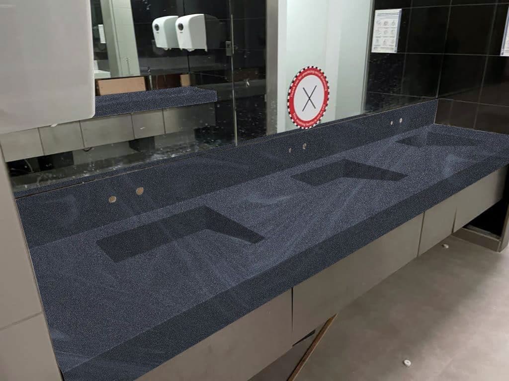 Description: Corian Evening Prima is a high-quality solid surface material with a rich blue tone and metallic flecks, reminiscent of a dappled evening sky. It offers durability and functionality for various interior design and architectural applications. Its unique coloration and pattern make it a popular choice for creating sophisticated spaces in both residential and commercial environments.