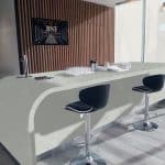 Description: A surface consisting of a white base with a frosted glass appearance, Frosted Ice has a soft, translucent effect. The colour is predominantly white with a subtle matte finish that diffuses light gently, making it ideal for backlit designs where the white tones can shift in hue with coloured lighting. This creates a cool, misty, and elegant visual reminiscent of frosted or etched glass
