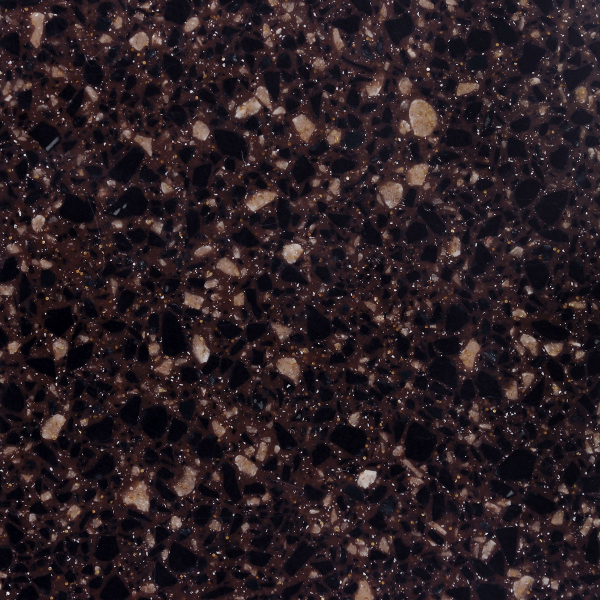 Description: Goldrush Gemstone has a warm metallic brown base with prominent speckled accents in gold, bronze, and silver tones, creating a quartz-like reflective effect. The overall appearance is rich and dynamic, with shimmering flecks that add depth and visual interest, reminiscent of natural gemstone surfaces