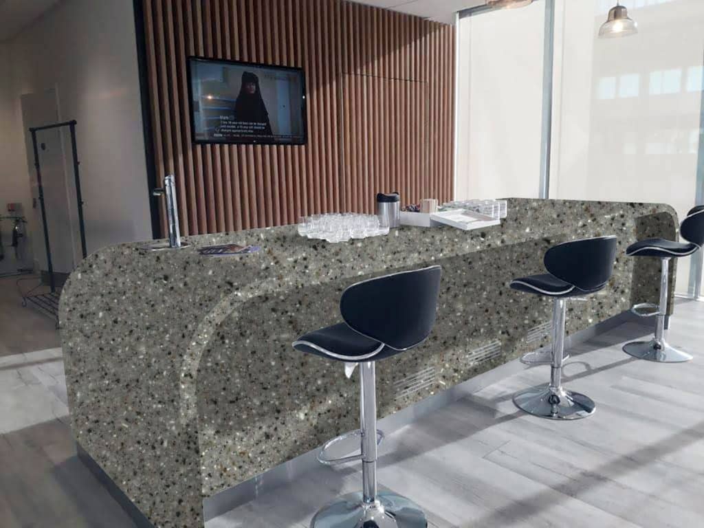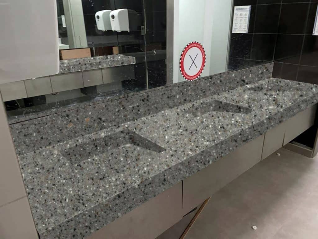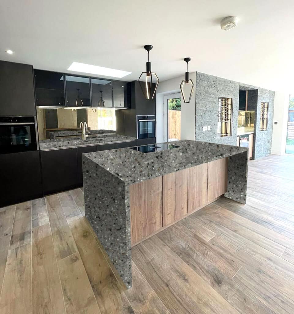 Description: HIMACS Highland has a stylish mix of greys and blacks, creating a natural and elegant appearance. It has lively textures, smooth tones, and a modern sophistication ideal for kitchens and bathrooms.