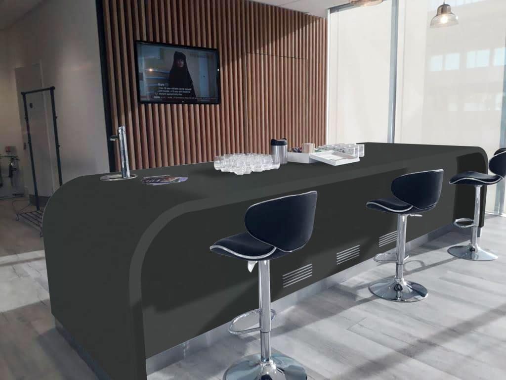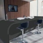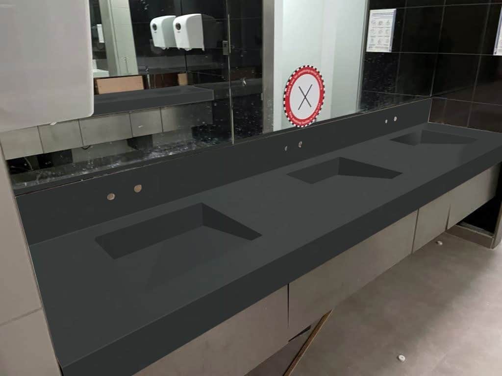 Description: HIMACS Intense Ultra Grey is a modern, rich grey hue with enhanced pigmentation, offering a balance between intensity and subtlety. Its thermoforming capabilities allow for sharp curves and dramatic designs.