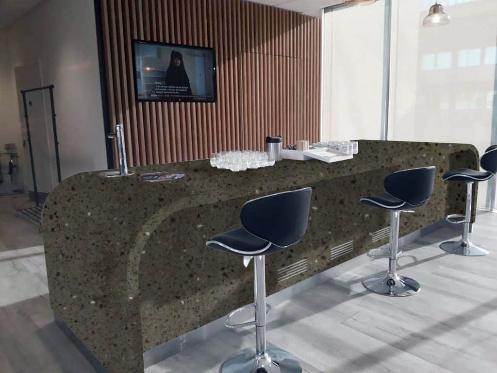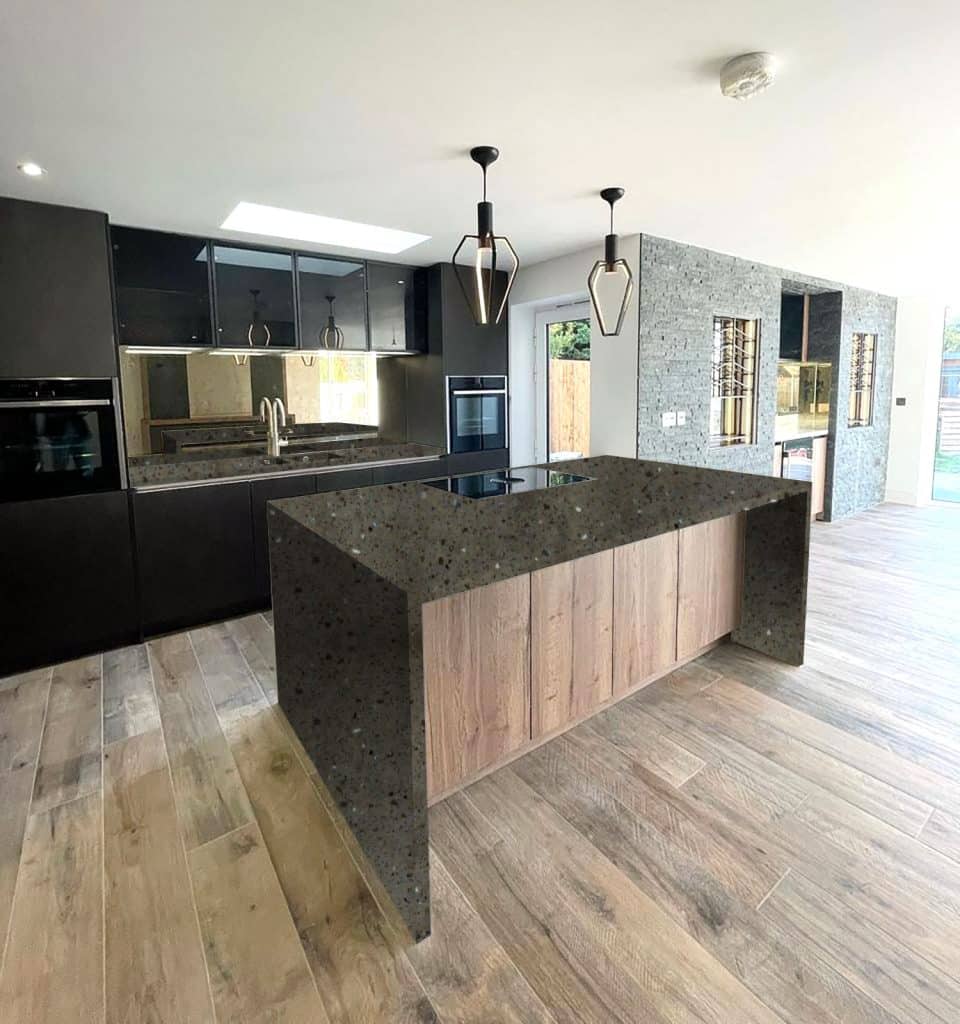 Description: Tristone Moria features a refined grey base adorned with delicate veining and speckled patterns, creating a sophisticated and timeless aesthetic. The neutral tone makes it versatile, seamlessly complementing various interior styles while adding subtle depth and character to the space