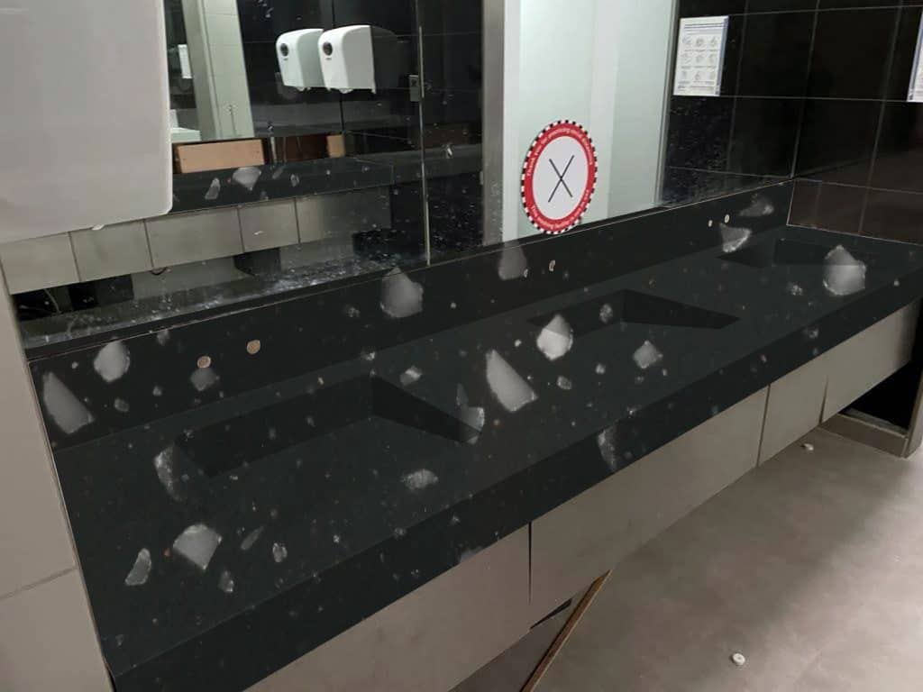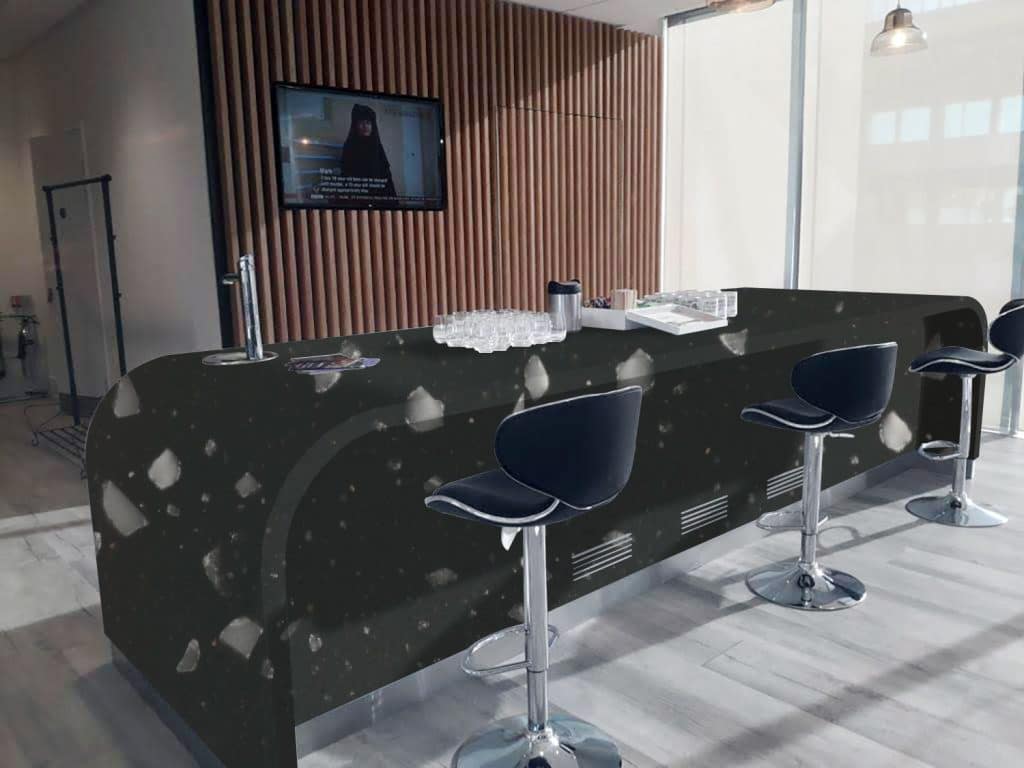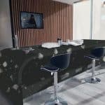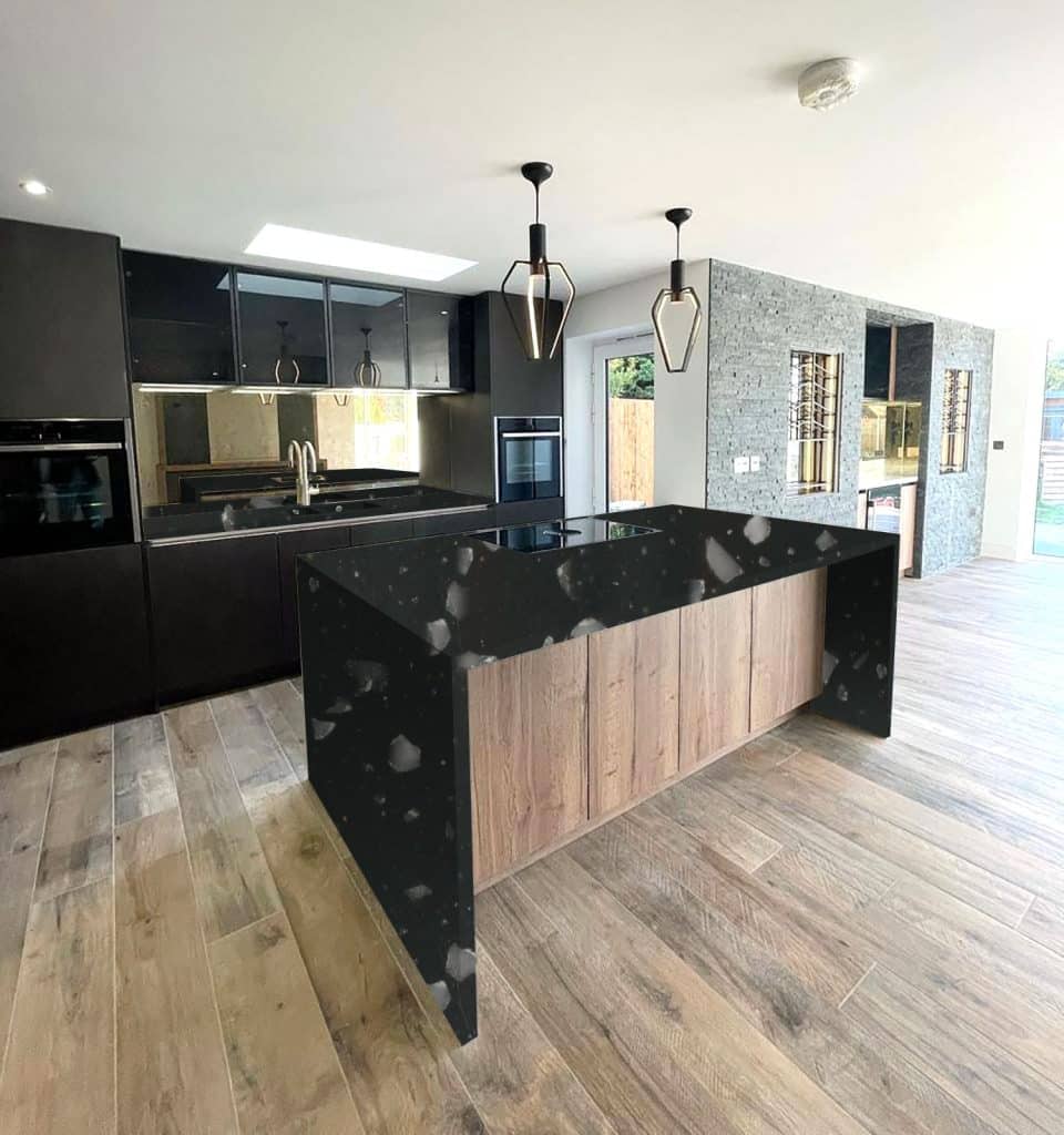 Description: Staron Pebble Ebony has a rich, deep black base with delicate speckles that resemble granite. The contrast between the dark background and shimmering highlights creates a sophisticated and textured surface, bringing timeless elegance to any space.