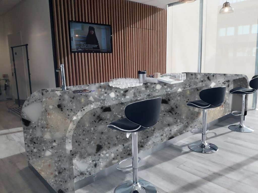 Description: Staron Pebble Grey is a mid grey colour with a textured appearance. It combines warm taupe undertones with grey sophistication. It works well as a neutral backdrop in interior spaces, complementing various colours and materials.