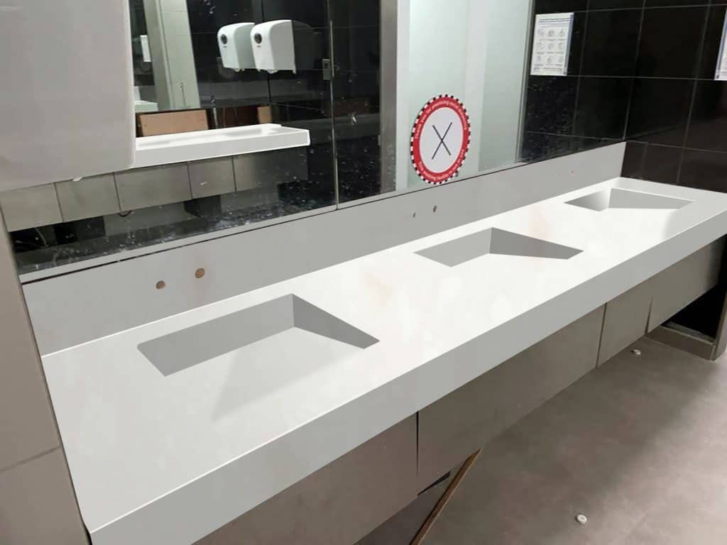 Description: Staron Pebble Swan has a speckled appearance with shades of white and grey, similar to natural stone. It's a versatile option for countertops and surfaces.