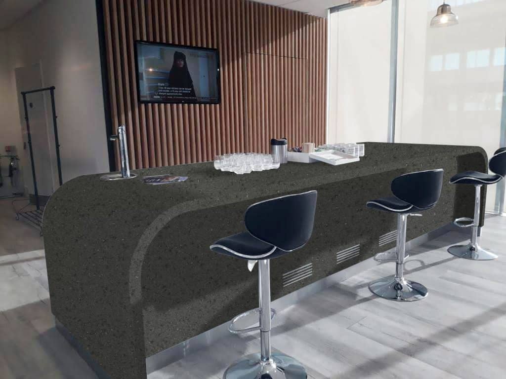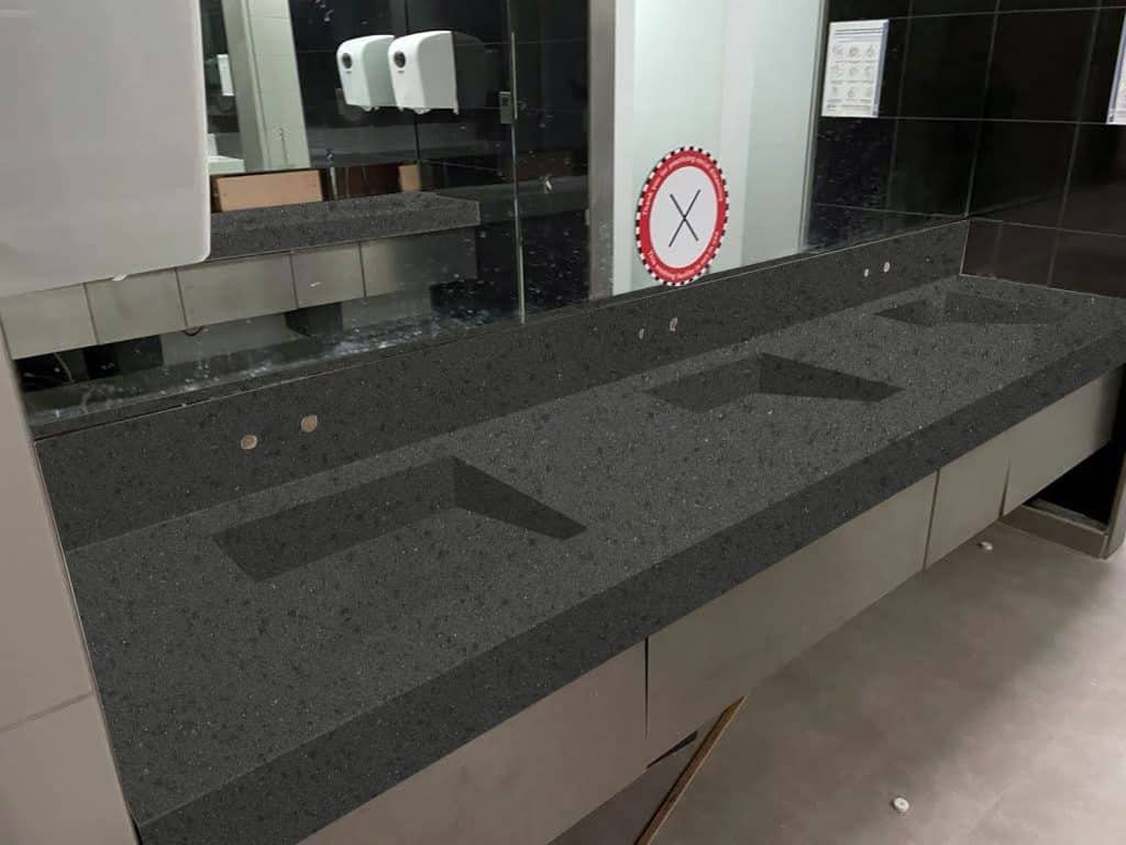 Description: Staron Quarry Starred has a rich, deep grey colour that looks elegant and sophisticated, with lighter flecks creating a natural stone texture. The mix of dark and light tones makes it suitable for different design styles, providing a striking yet subtle backdrop for any space.