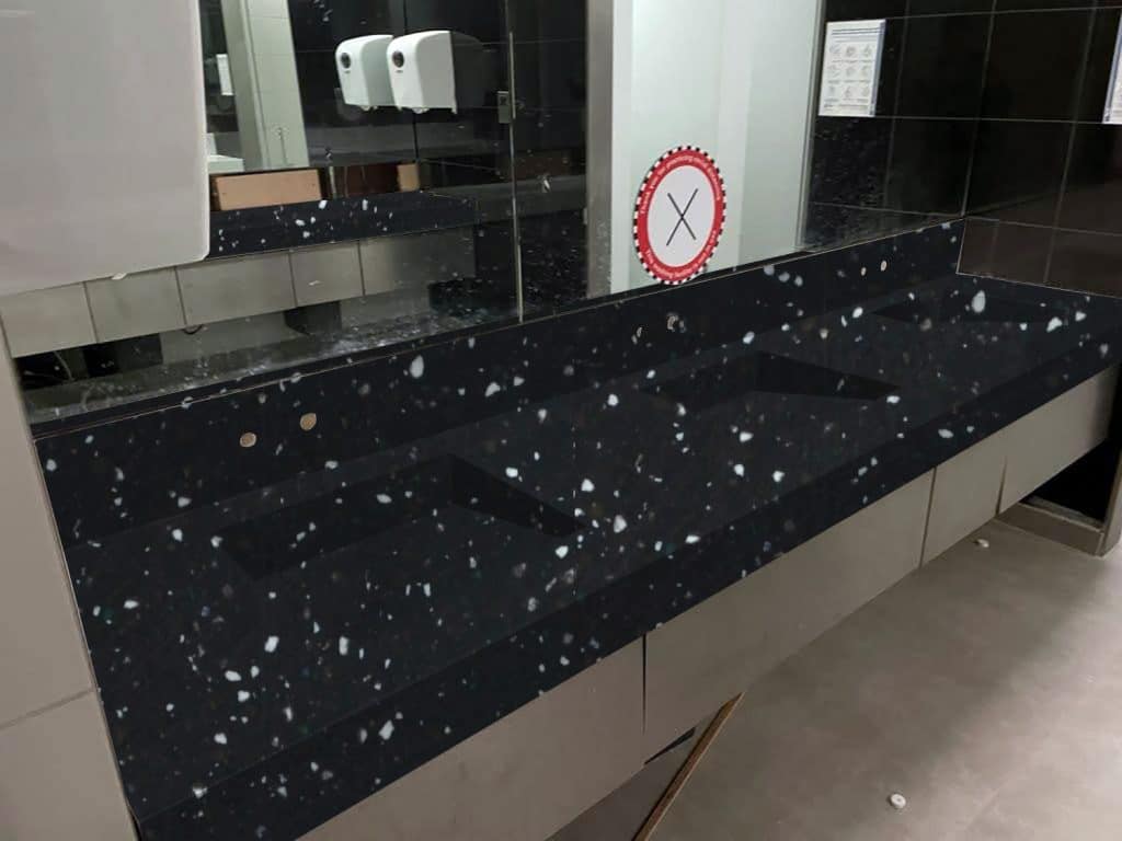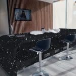 Description: Staron Sanded Onyx features a deep black hue, enhanced by subtle variations and soft flecks. This creates a refined and dynamic surface, with an interplay of light and shadow that adds depth. Its elegant and modern aesthetic makes it ideal for bold visual statements in any space.