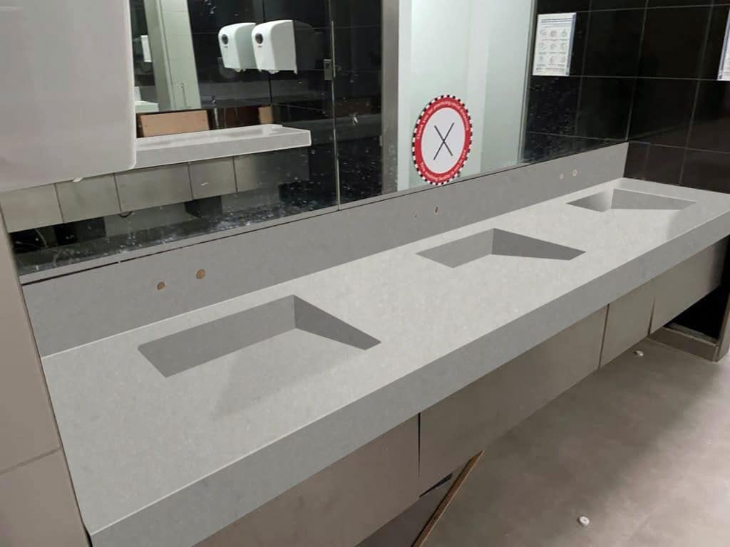 Description: Staron Sanded Stratus has a soft, muted grey tone with subtle variations and speckled patterns. It combines light and dark grey hues to create a sophisticated look for a space. The varied colour chips within the surface add depth, making it a versatile choice for modern designs.