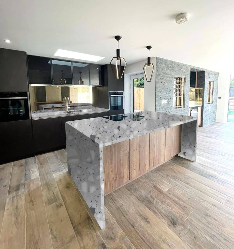 Description: Tristone Stardew is a soft grey with a terrazzo-style pattern, scattered with white and light grey flecks. The mix of tones brings subtle depth and a modern edge, resulting in a look that’s both stylish and enduring.