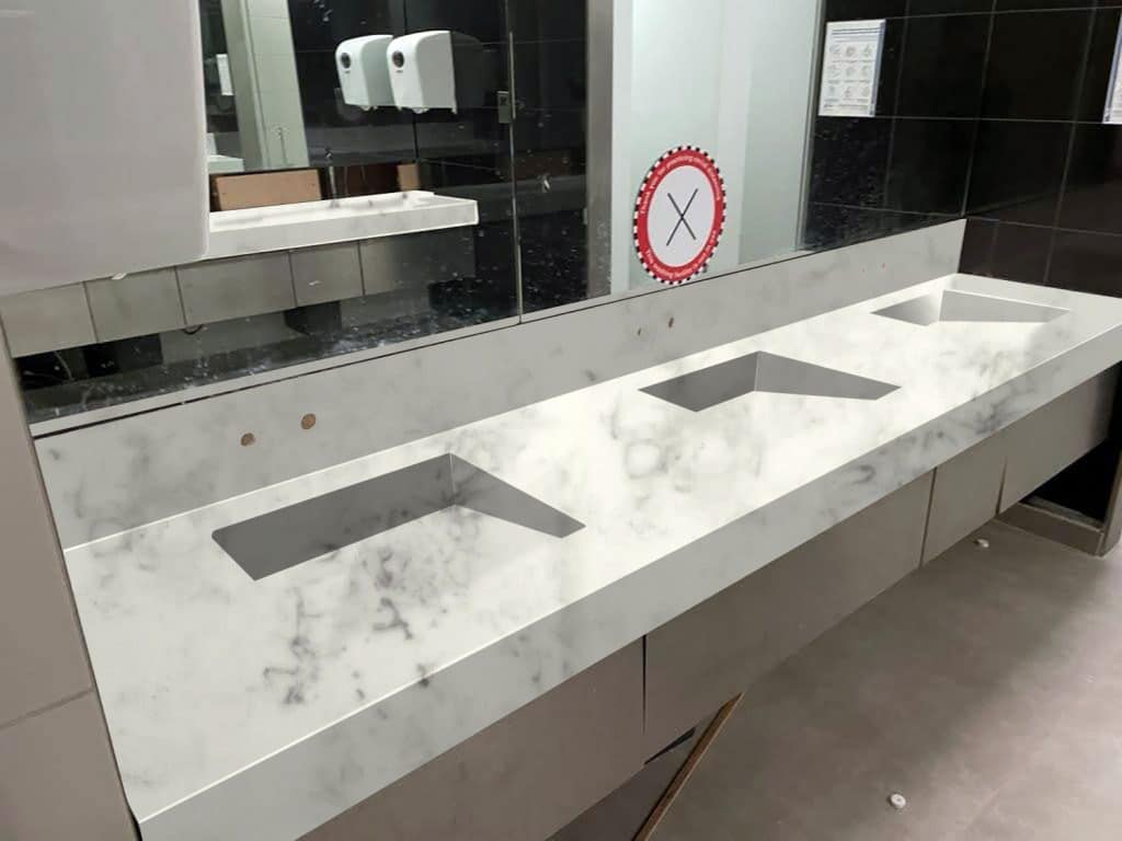 Description: Mirostone Taj Mahal combines soft whites and subtle greys to create the look of natural marble. The colour mimics the elegance of stone and is easy to maintain while adding sophistication to any space.
