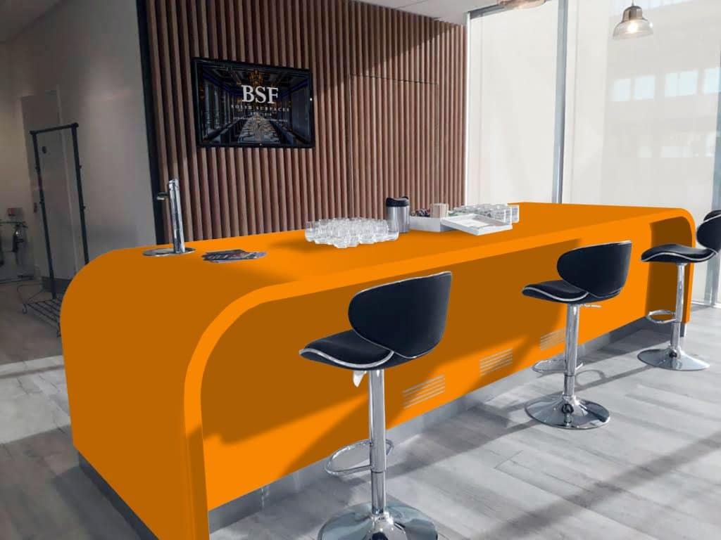 • Description: Meganite Solid Surface in Tangerine is a bold, vibrant orange shade with a lively and playful character