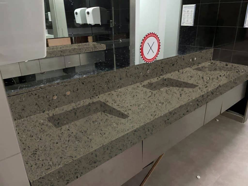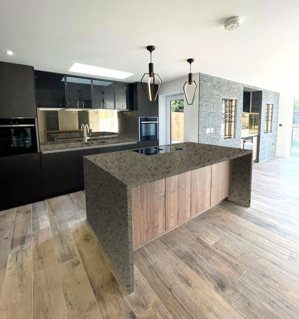Description: Velstone Cosmic Asher is a warm brown with terrazzo like speckles in soft brown and white. It’s an intriguing looking colour that adds texture.
