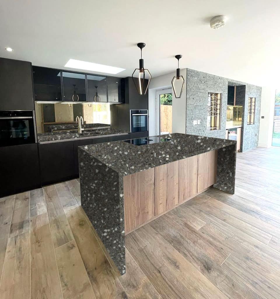 Description: Velstone Peppercorn is a rich charcoal grey that strikes a balance between classic grey and soft black, offering a sleek and contemporary edge. Its deep tone shifts subtly with the light, appearing warmer or cooler depending on the setting. The neutral base makes it a flexible choice for both modern and traditional interiors.