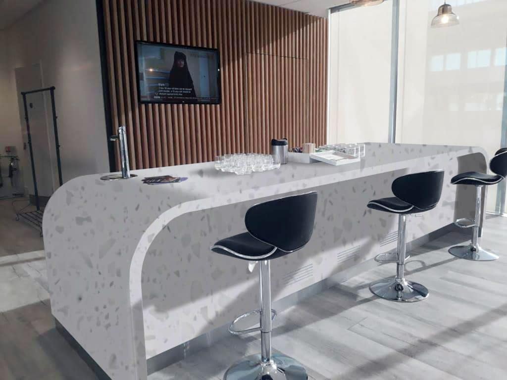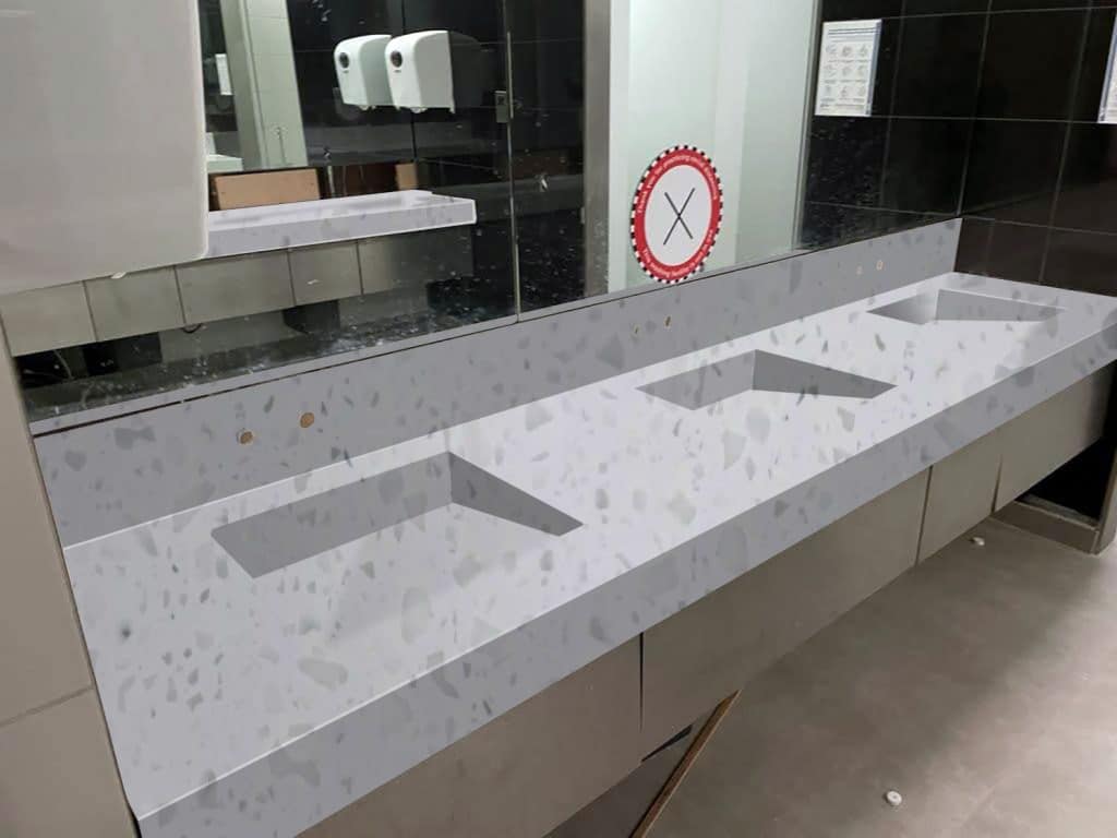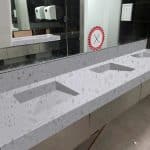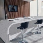 Description: Tristone White Coral features a crisp white base adorned with scattered fragments of soft grey and translucent accents, creating a subtle yet dynamic pattern. The interplay of tones adds depth and texture while maintaining a clean and contemporary aesthetic.